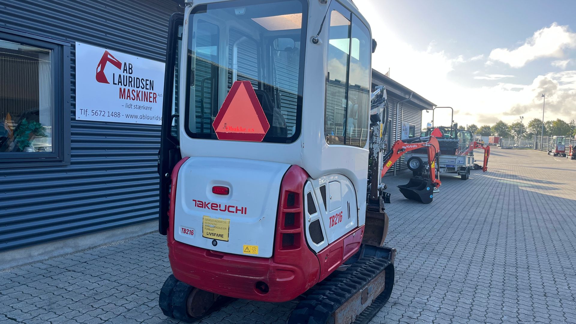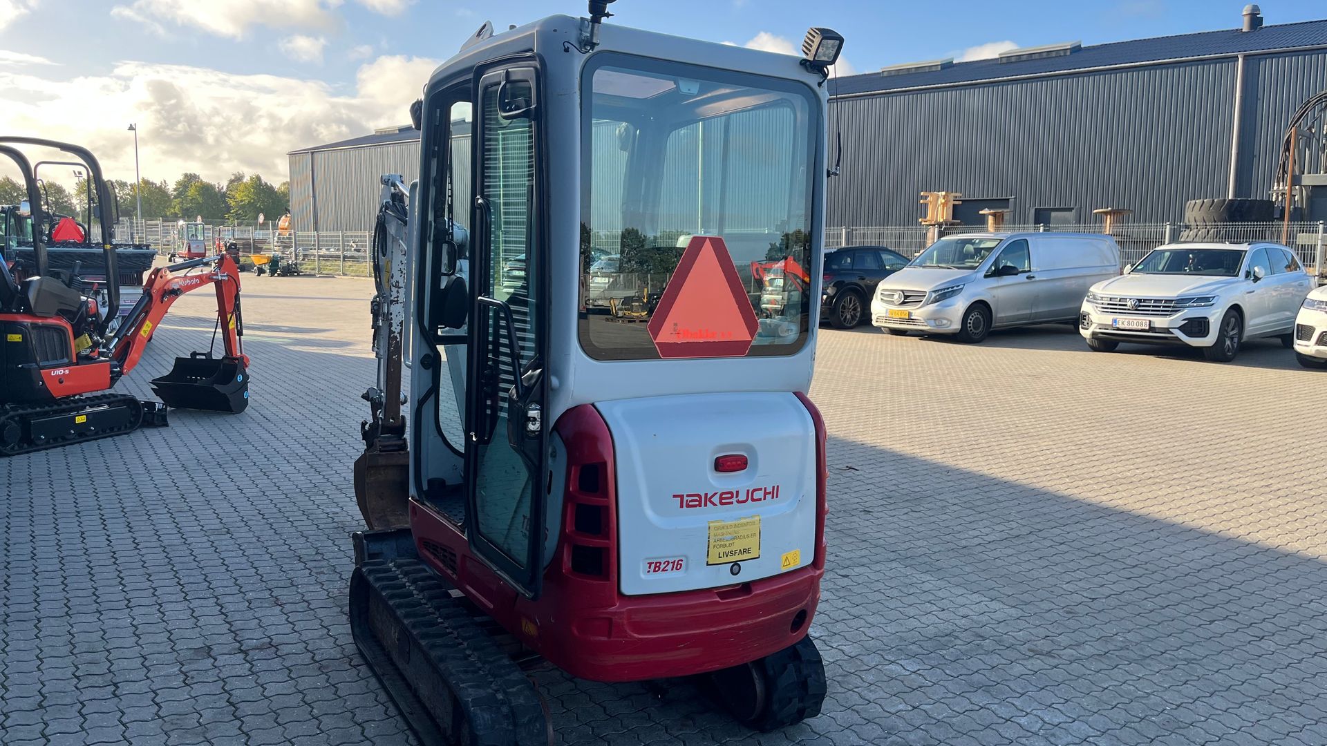 God brugt Takeuchi TB216 monteret med hydraulisk hurtigskifte incl 1 skovl.