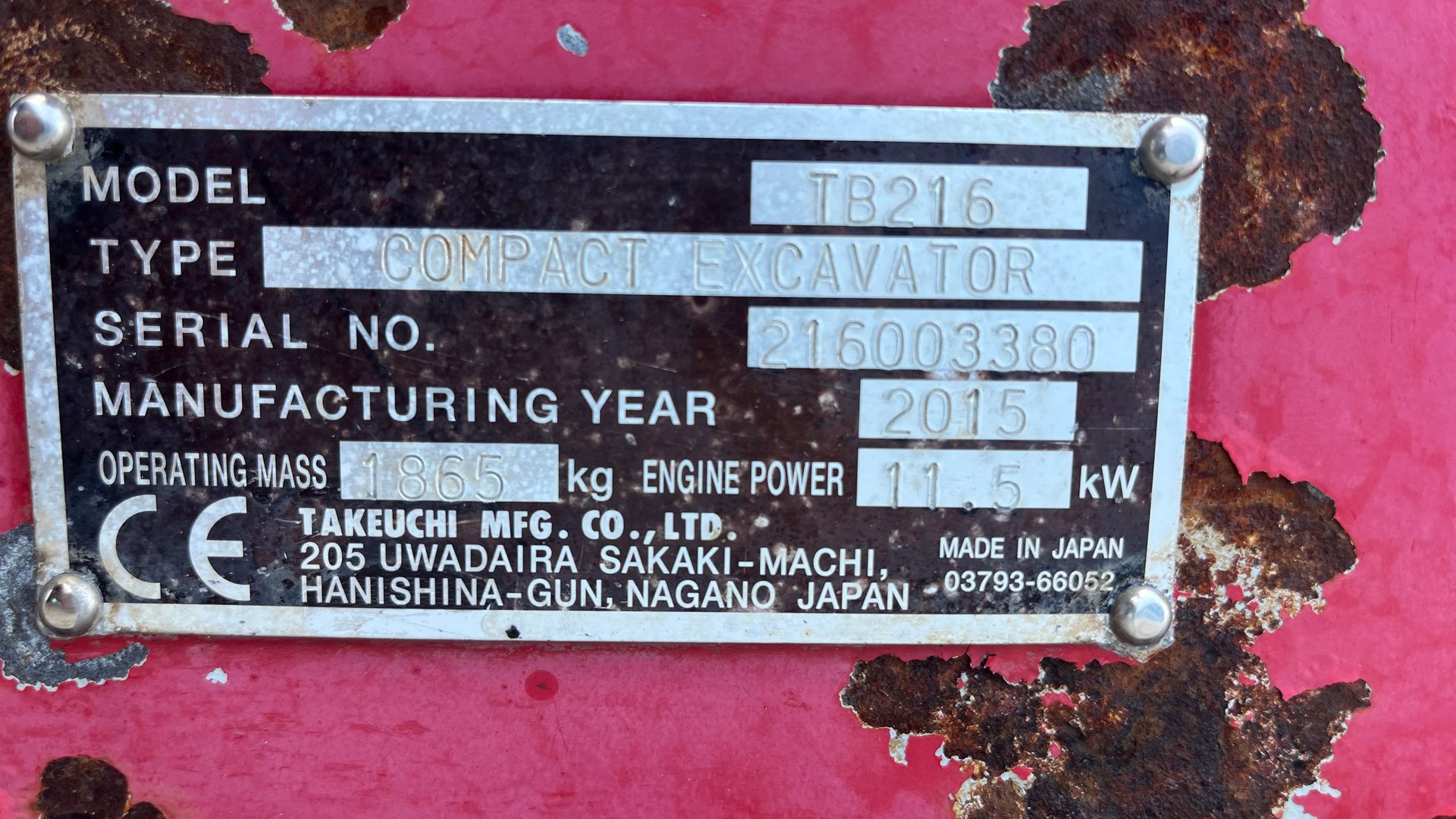 Takeuchi TB216 Hydraulisk hurtig skifte