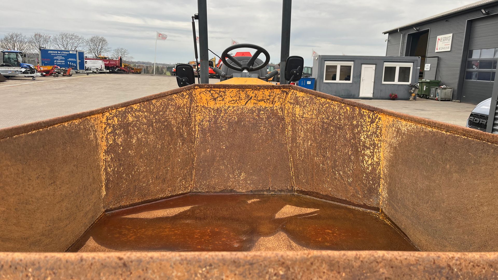 Fin brugt 2tons dumper som kan flyttes på trailer. højtip og svingbar lad. starter og køre godt. løbene serviceret hos tidligere ejer.