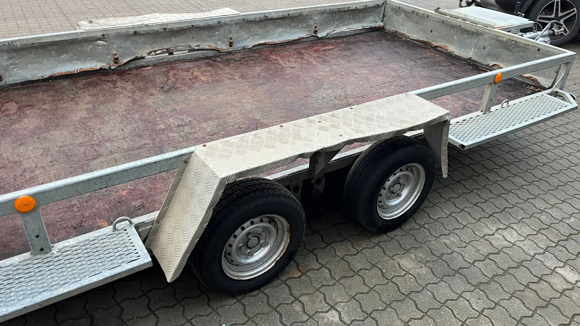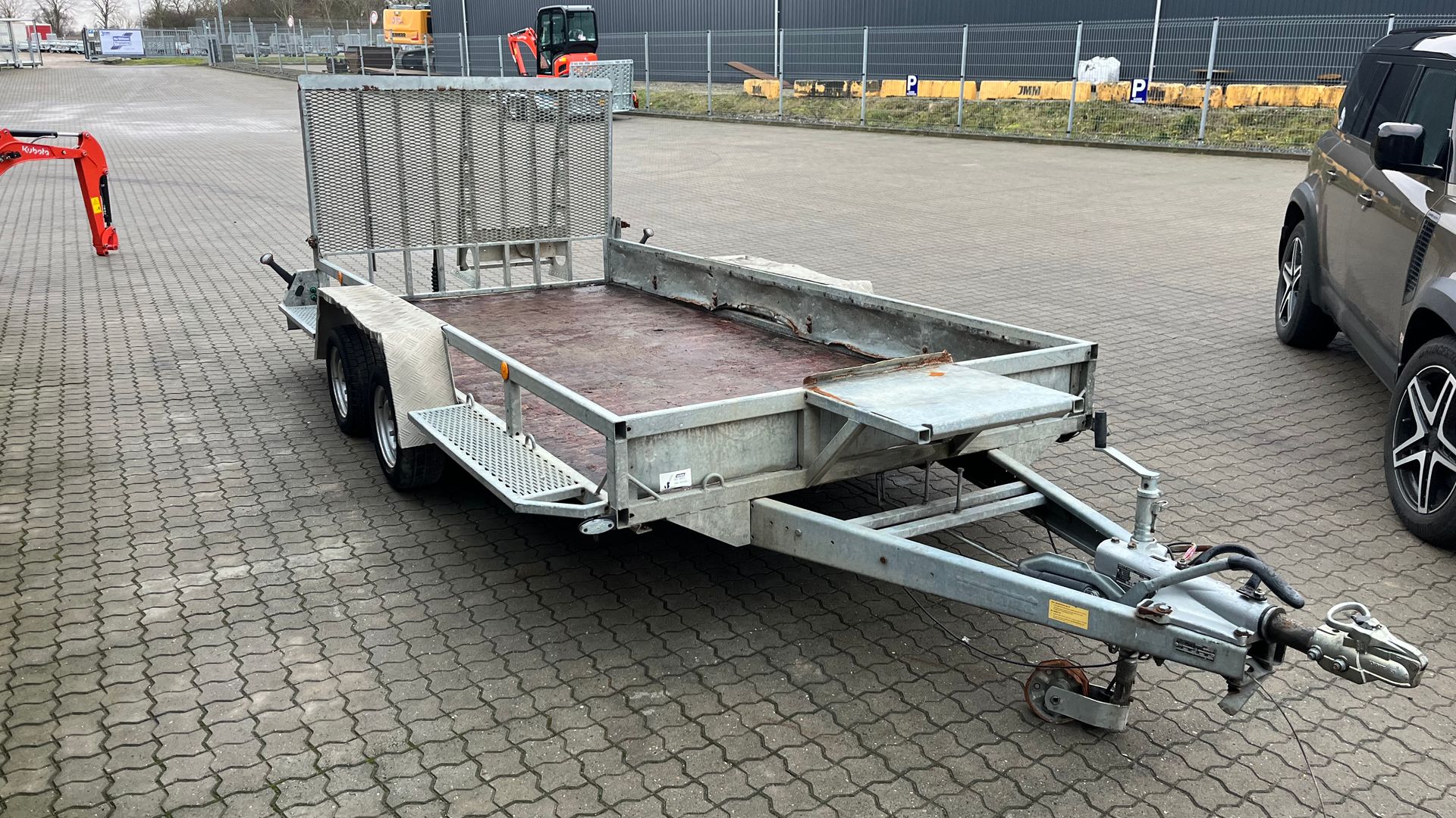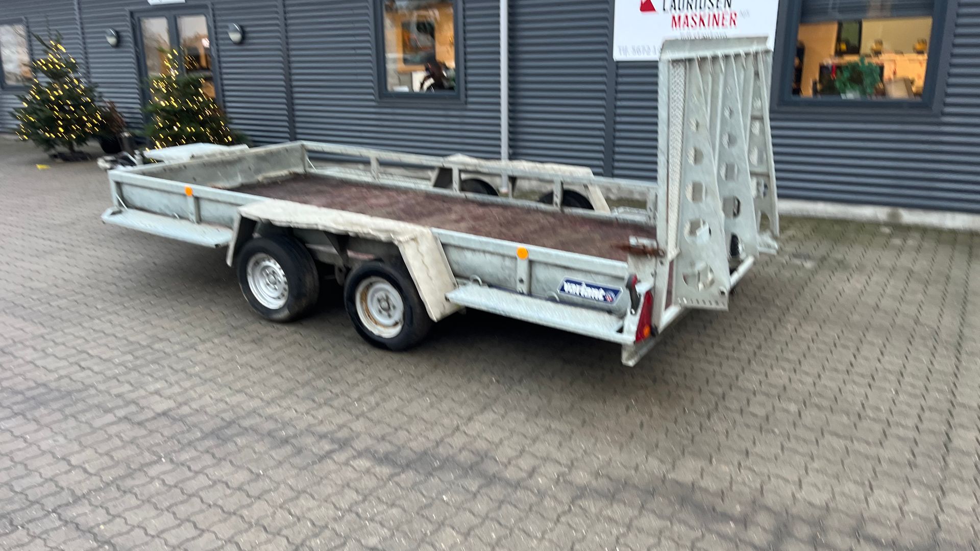 Brugt 3500kg maskintrailer der er fra 2022. så skal ikke synes. fin 4 meter maskintrailer med læsserampe. total 3500kg laster 2650kg.