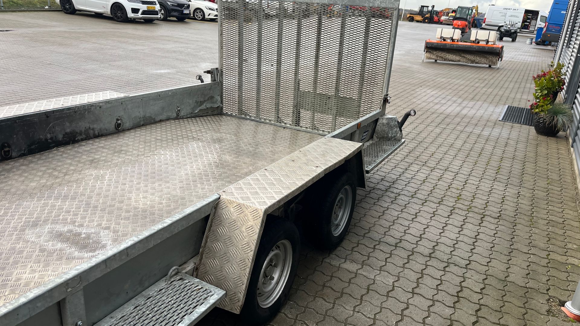 Fin 3500kg maskintrailer med 4meter lad. fin stærk trailer der køre på bladfjeder. standart led lys, Alubund, fuldbredde læsserampe, aluskærme og trin på siden.