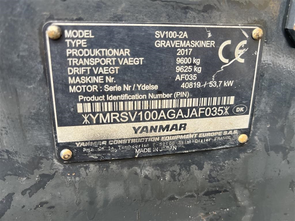 Yanmar SV100 2A Centralsmørring og hydraulisk hurtigskifte.